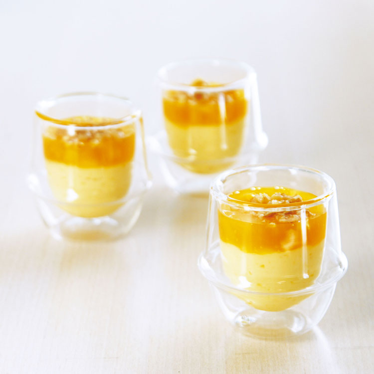 シャンパーニュ以外にも、色鮮やかなジュースやスムージー、カクテルを入れて、また、何層にも重ねたカラフルなデザートを横から見て楽しむこともできます。