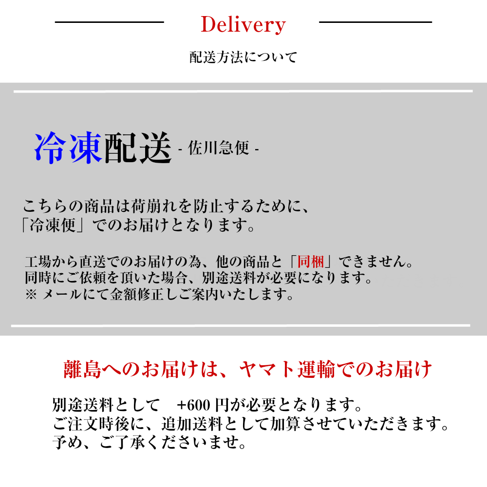 【保存方法】 冷凍保存で出荷日より14日解凍後冷蔵保存で2日間(解凍日を含む)
