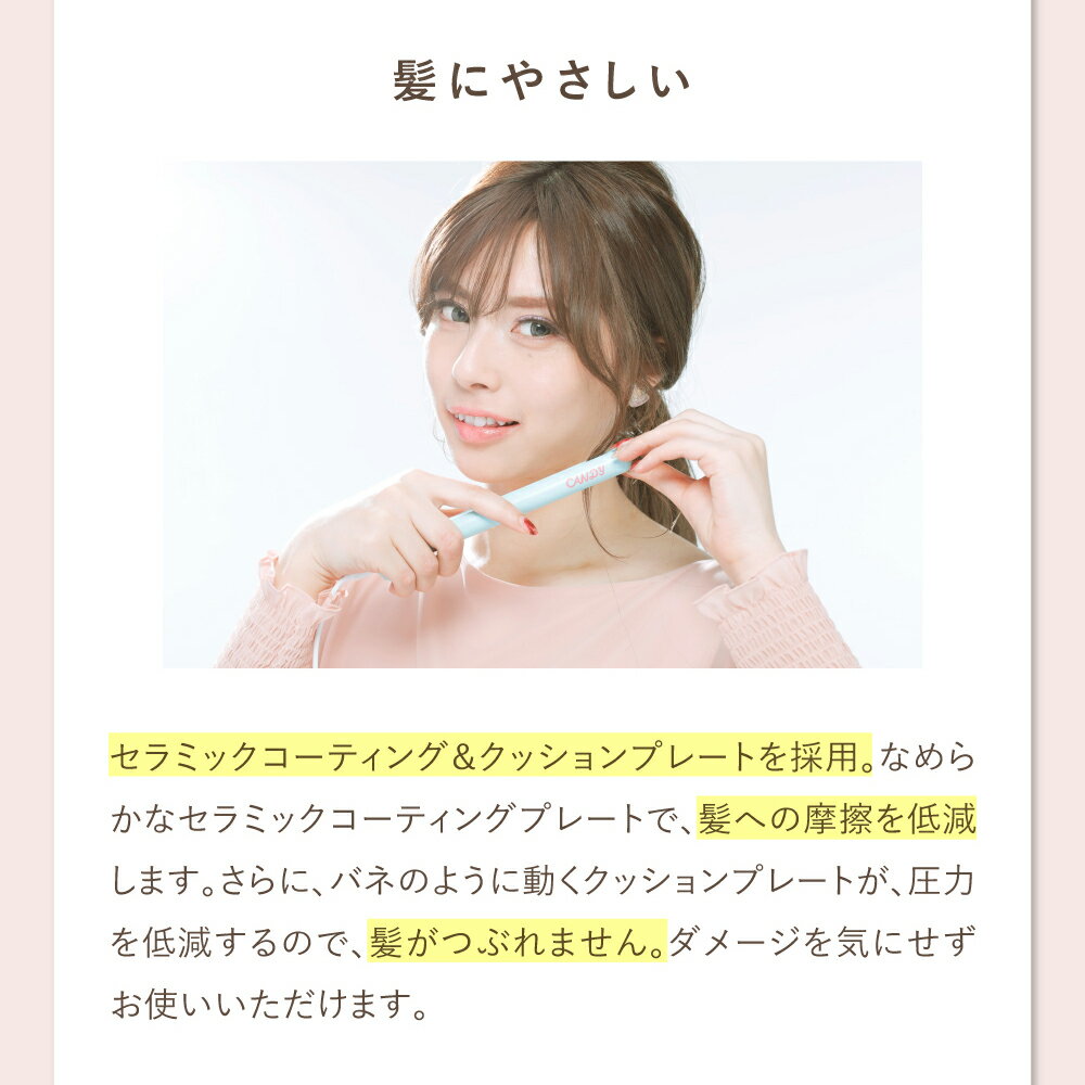 | 特徴 | 1台でカールもストレート思いのまま! 2WAYヘアアイロン silky。 ボタンひとつでカンタン切り替え! カールとストレートの2つのアレンジが楽しめます。 最高温度220℃で、どんな髪質も艶やかに仕上げます。 わずか約40秒で100℃に到達するスピード立ち上がり! 忙しい朝のスタイリングもストレスフリーに。 | |