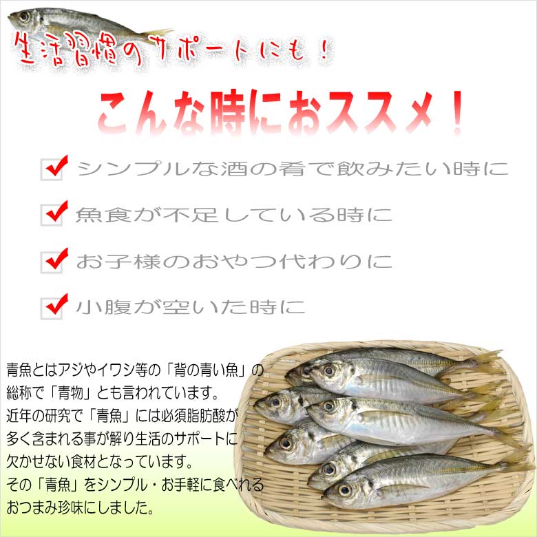 あじの煮干しは丸ごと食べれますが苦味もほとんど無く、御つまみや酒の肴、お子様のおやつとしてもお召し上がれます。