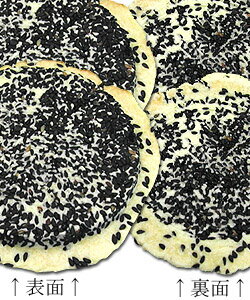 特殊製法の生地に厳選された胡麻を表とそして、裏にもぎっしり贅沢につけました。
