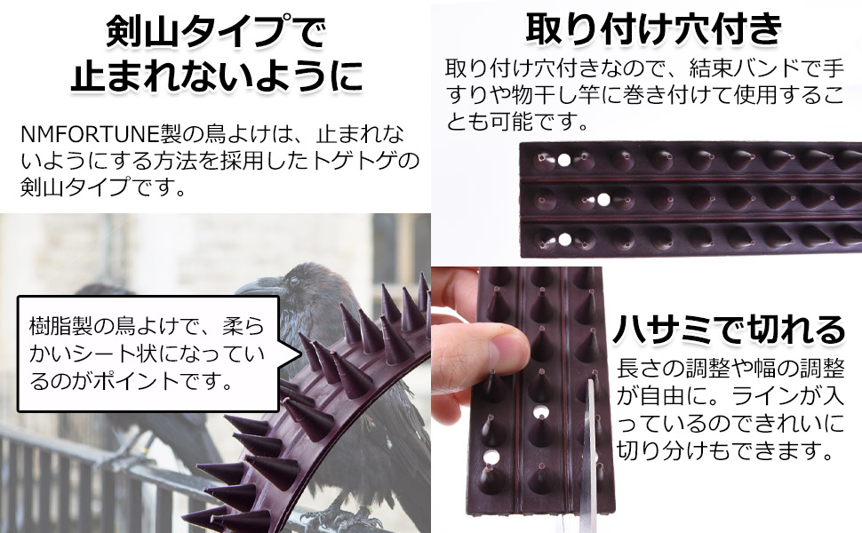 「NMFORTUNE」製の鳥よけは、止まれないようにする方法を採用したトゲトゲの剣山タイプです!