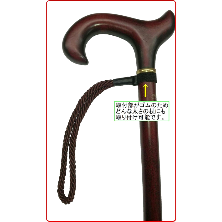 | ●ステッキ用のストラップ ●杖の太さに関係なく取付可能なフリーサイズ ●ドイツ製の高級手編仕様 ●あなたのステッキをワンランクアップする小物 ●ブラック、ブラウン、マホガニー、ライトの4色 |