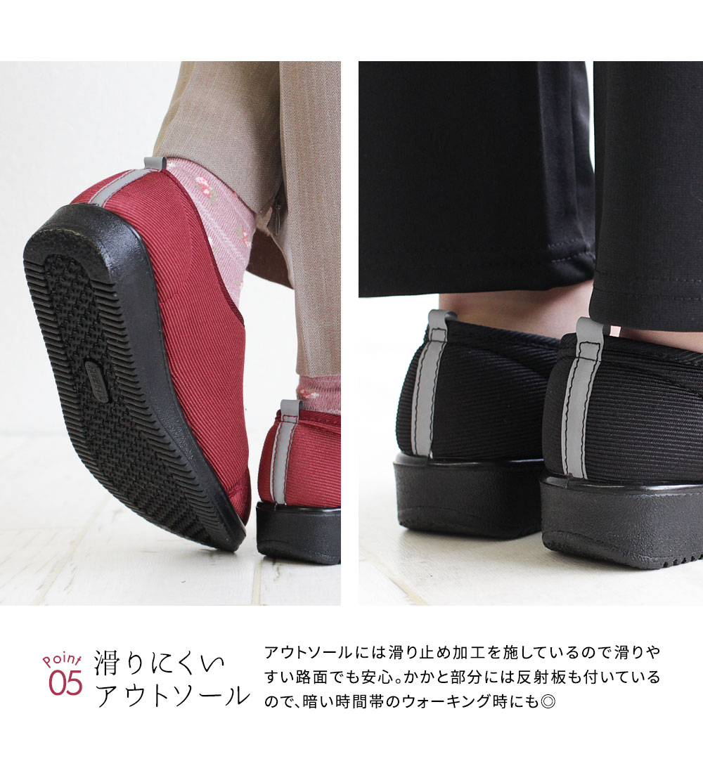 滑り止め加工のゴム底アウトソールで歩行をサポート。