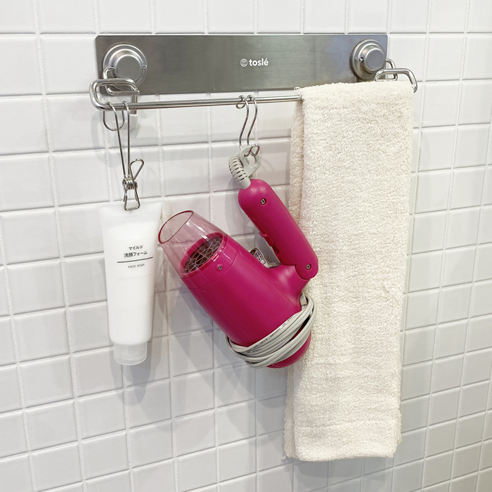 自由自在に消毒セットなどを吊り下げできるから、設置も撤去も簡単で便利で安心!
