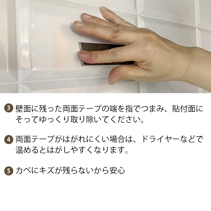 *はがしにくい場合は、ドライヤー等で適度に温めるとはがしやすくなります。