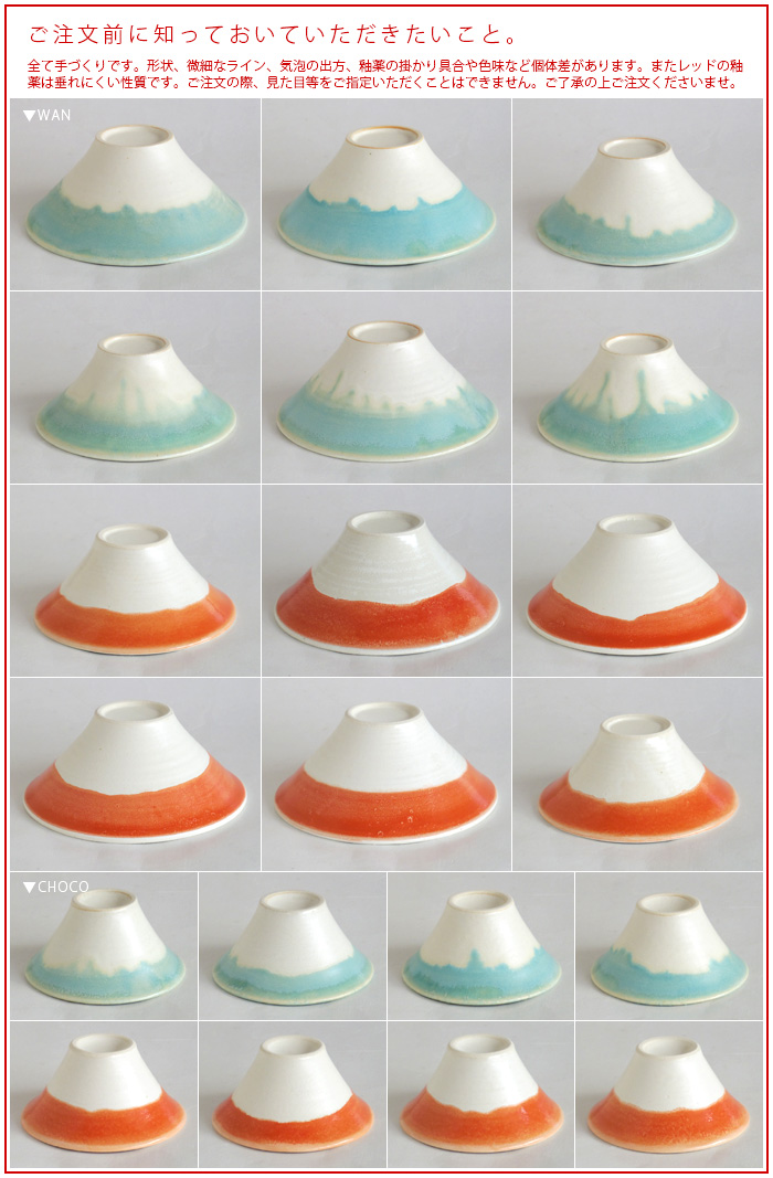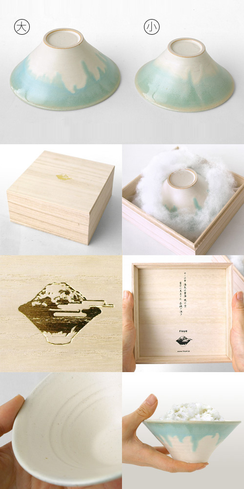 | ■備 考 | 日本製 贈り物に最適な桐箱入りです。 箱蓋表側…ご飯を富士山に、湯気を雲海に見立てたロゴの金箔押し 箱蓋裏側…「めしは雪 湯気は雲海 腹は空 富士に見立てた 茶碗で頂き」のメッセージが印字 職人がひとつひとつ丁寧に作り上げた手作り品です。器の微細なライン、気泡の出方、ブルーの釉薬の掛かり具合や垂れ感など、ひとつとして同じものはありません。個体差があることをご了承のうえご注文くださいませ。 |