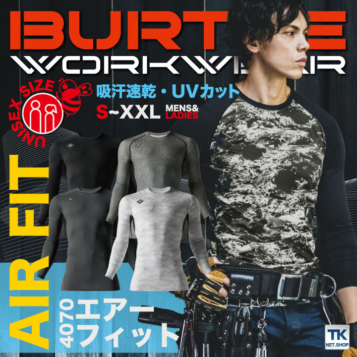 4070 エアーフィット 長袖インナー ストレッチ 防臭 吸汗速乾加工 UVカット ユニセックス BURTLE バートル 即日出荷 バートル アンダーシャツ 夏用 長袖 クールコンプレッション インナーシャツ スーパーストレッチ メンズ レディース 男女兼用 BURTLE bt-4070
