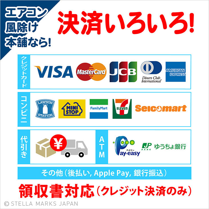 | 各種タイプの エアコンに対応 | 天井埋め込みカセットタイプ 天吊りタイプ 円形吹き出しタイプ(アネモ型) 壁面吹き出しタイプ 床置きタイプ 壁掛けタイプ(家庭用エアコン) ※ライン型吹き出し口のエアコンにはエアーウィングスリットが対応しております |