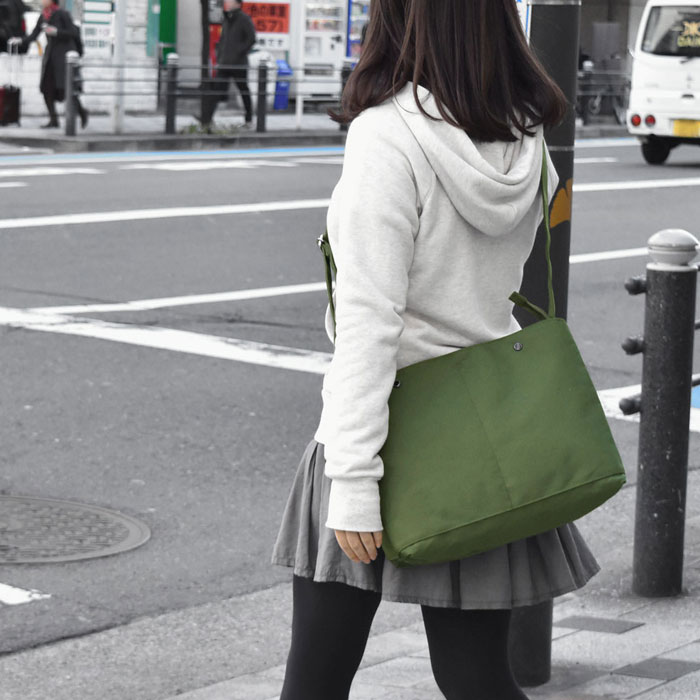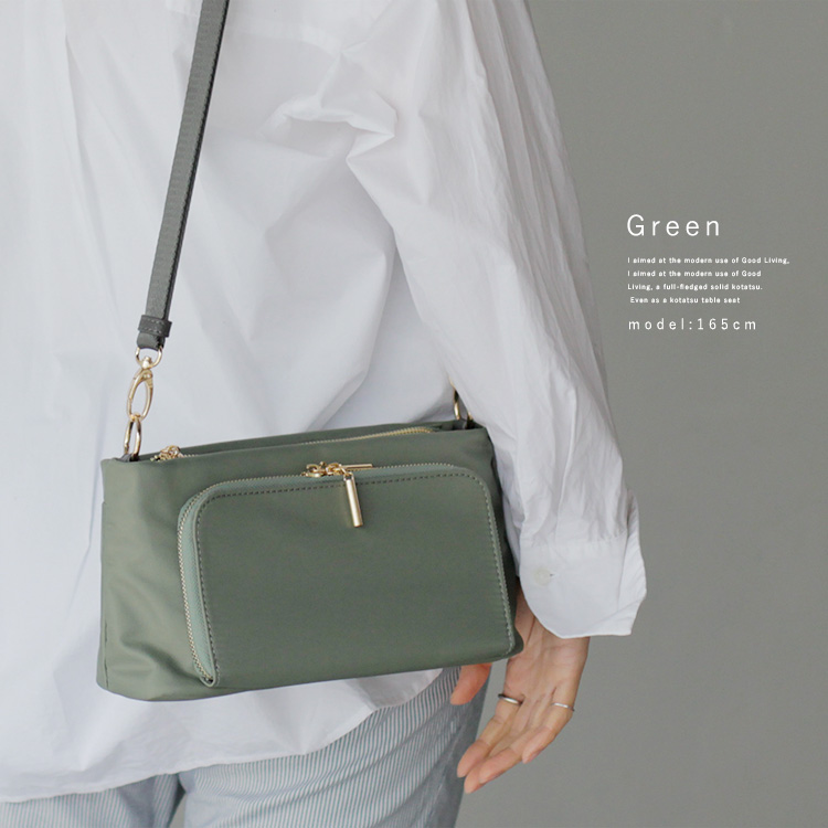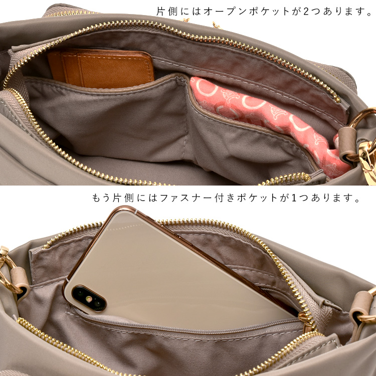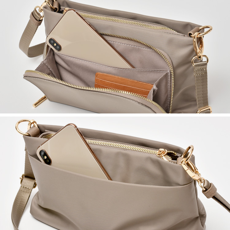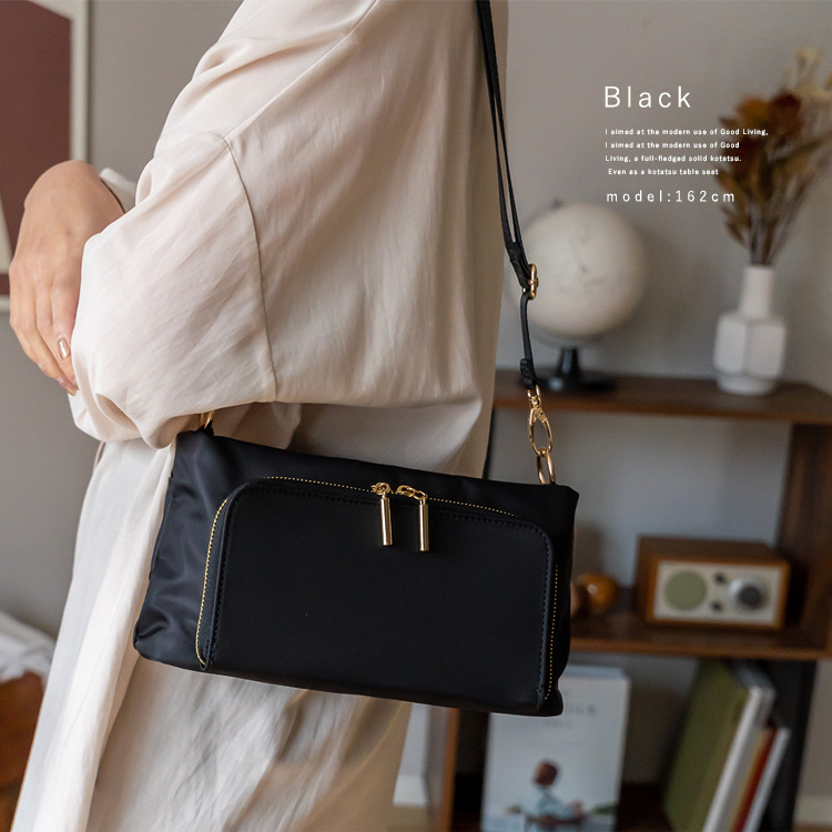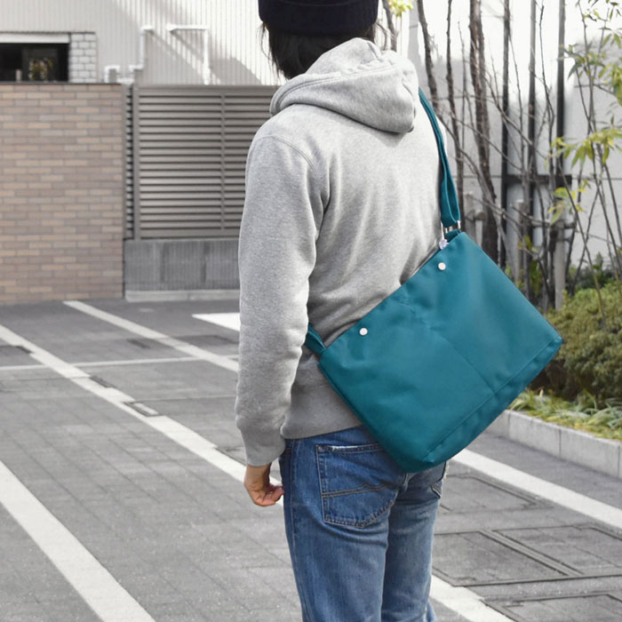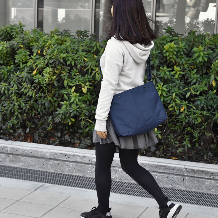 豊富な収納スペースにこだわった軽量ナイロンショルダーバッグ。