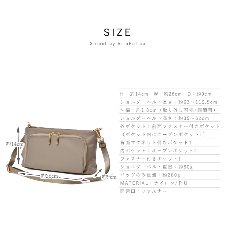 ●ショルダーベルト長さ:約63~119.5cm×幅:約1.8cm(取り外し可能/調節可)