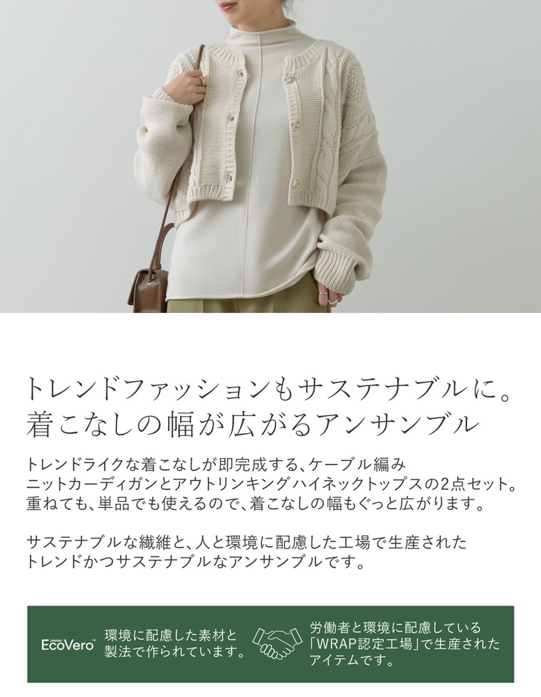 ![≪11月22日発売≫トレンドファッションもサステナブルに。M/Lサイズ[2点セット][サステナブル]ケーブル編みニットカーディガンtimes;アウトリンキングハイネックトップスレイヤードアンサンブルレディース/[先行予約受注]](../galstar/cabinet/item/1337/133721_d2_2.jpg)