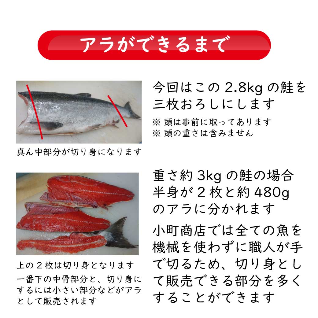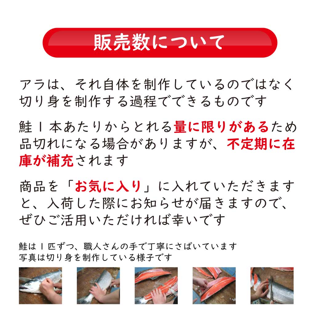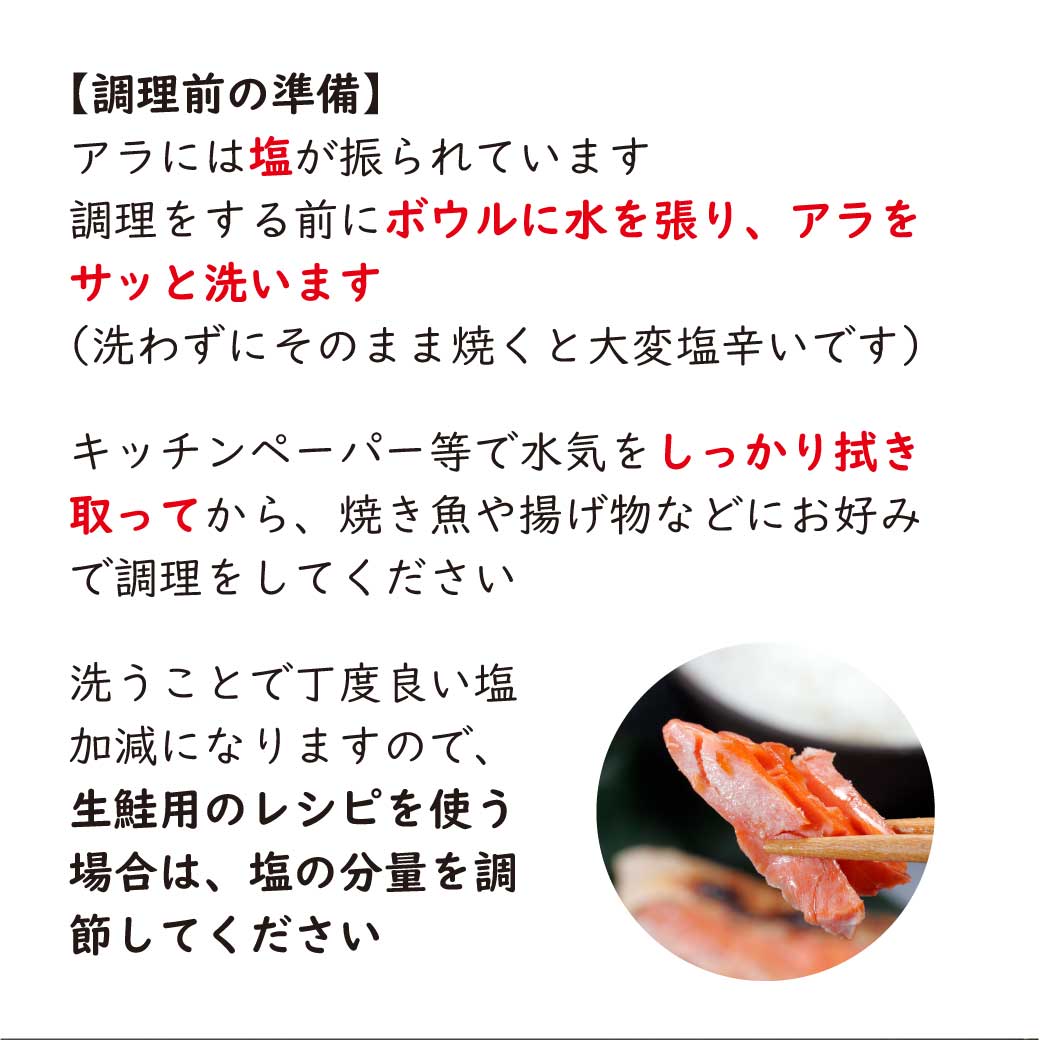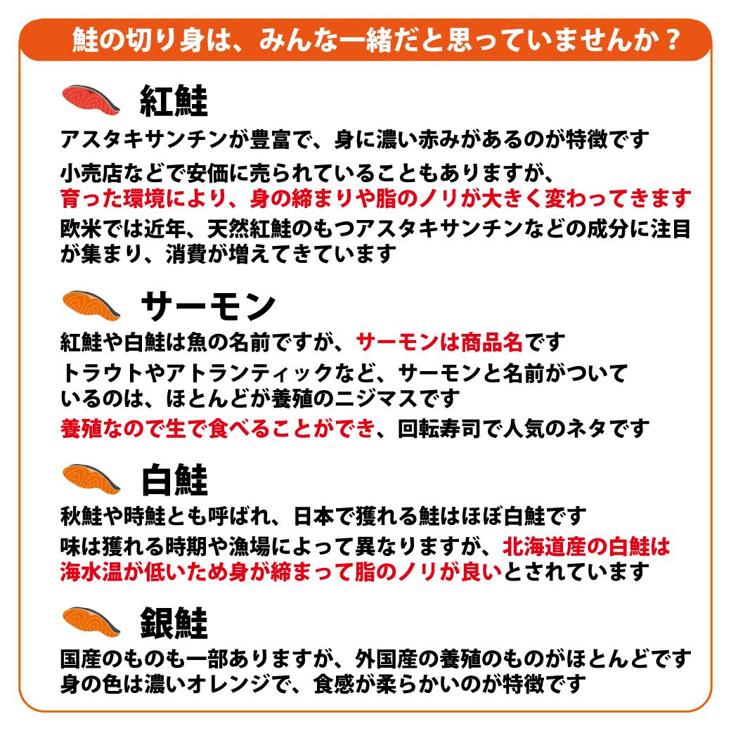 | 原材料 | 【秋鮭粕漬け】しろさけ(北海道)、酒かす、酒、みりん、砂糖、食塩 【秋鮭西京漬け】しろさけ(北海道)、味噌、砂糖、米発酵調味料、食塩、豚ゼラチン、香辛料/増粘剤(加工澱粉) 【秋鮭甘味噌漬】しろさけ(北海道)、味噌、酒、みりん、砂糖、食塩/酒精 【秋鮭辛子明太子漬け】しろさけ(北海道)、酒、みりん風調味料、唐辛子、たらこ、食塩/酸味料、調味料(アミノ酸等)、酸化防止剤(V.C)、ナイアシン、発色剤(亜硝酸Na)、赤色102号、黄色5号 |