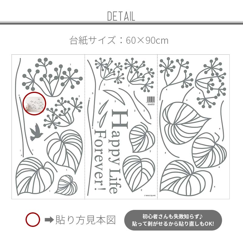 | ご使用方法 | ■貼り付け方 ・貼り付けたい箇所のサイズにあわせてシートをカットします。 ・貼り付けたい箇所をきれいにします。塵や埃のないよう拭き上げてください。 ・台紙からシートを少し剥がし、端から少しずつ貼り付けていきます。スキージーをお使いいただくとスムーズに貼り付け頂けます。 ・空気が残らないように全体をならして完成です。 ■用途 平らな壁、木製の表面、金属表面、タイル表面、ガラス表面、プラスチック表面 ※下記素材には貼り付きません 凹凸のある壁紙表面、ザラザラしている表面、不均一な表面 (砂壁、土壁、エンボス加工の壁紙等) 使用後の返品・返金はご対応できかねますのであらかじめご確認頂きご検討ください。 ■使用上のご注意 ・劣化した素材や柔らかいエンボス加工の壁紙は剥がす際に一緒に素材が剥がれてしまうことがございます。 ・貼る前にゴミや埃、水分、油分等が残っていると剥がれてしまう原因となりますので必ずきれいにし、乾いた布で拭いてからご使用ください。 ・気泡が入った状態で貼り付けしますと剥がれる原因となります。スキージーを使い出来るだけ均一に貼ってください。 ■土台へのダメージについて 幅広い用途でご利用いただける当シートですが貼り付ける箇所の素材によってはダメージを与えてしまう可能性がございます。 ふすま等の紙製のものやペンキ壁等の元々粘着質に弱いものは傷めてしまう可能性が大きいので、あらかじ目立たない箇所でお試し頂いてからご使用ください。 |
