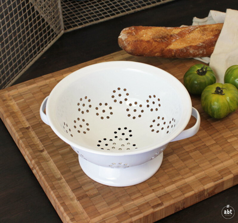 安全で機能的にも優れた琺瑯のコランダーは、キッチンや流し台でキレイに清潔に、安心して使えます。