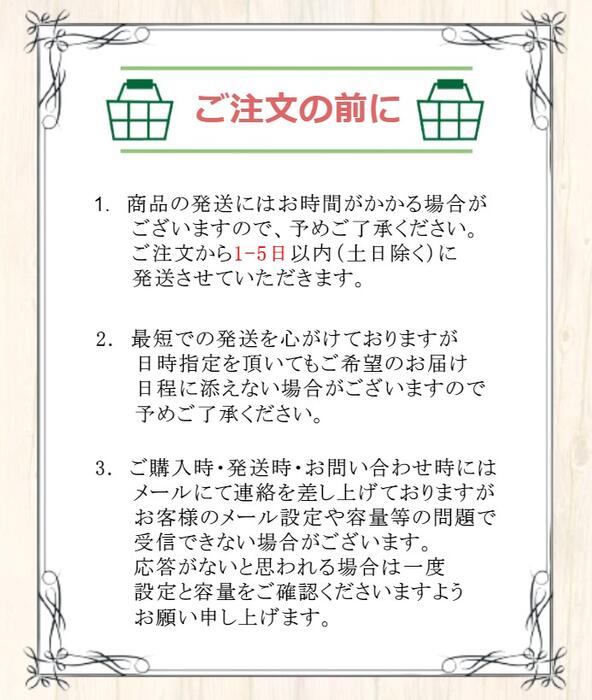 ※配送日時の指定についてはできる限り対応いたしますが、ご要望に添えないこともございます。あらかじめご了承ください。