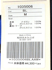 | 素材 | 本体: 100% ポリエステル 裏地: 100% ポリエステル |